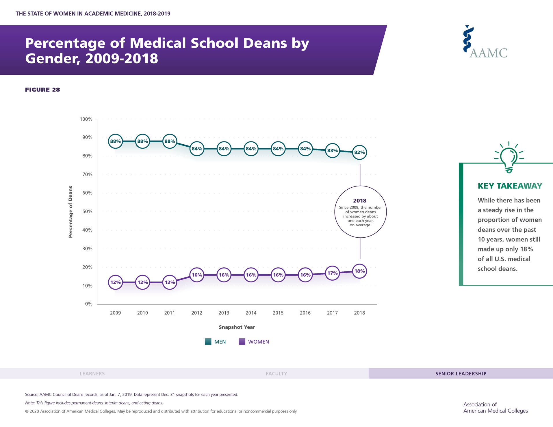 Figure 28: Percentage of Medical School Deans by Gender, 2009-2018