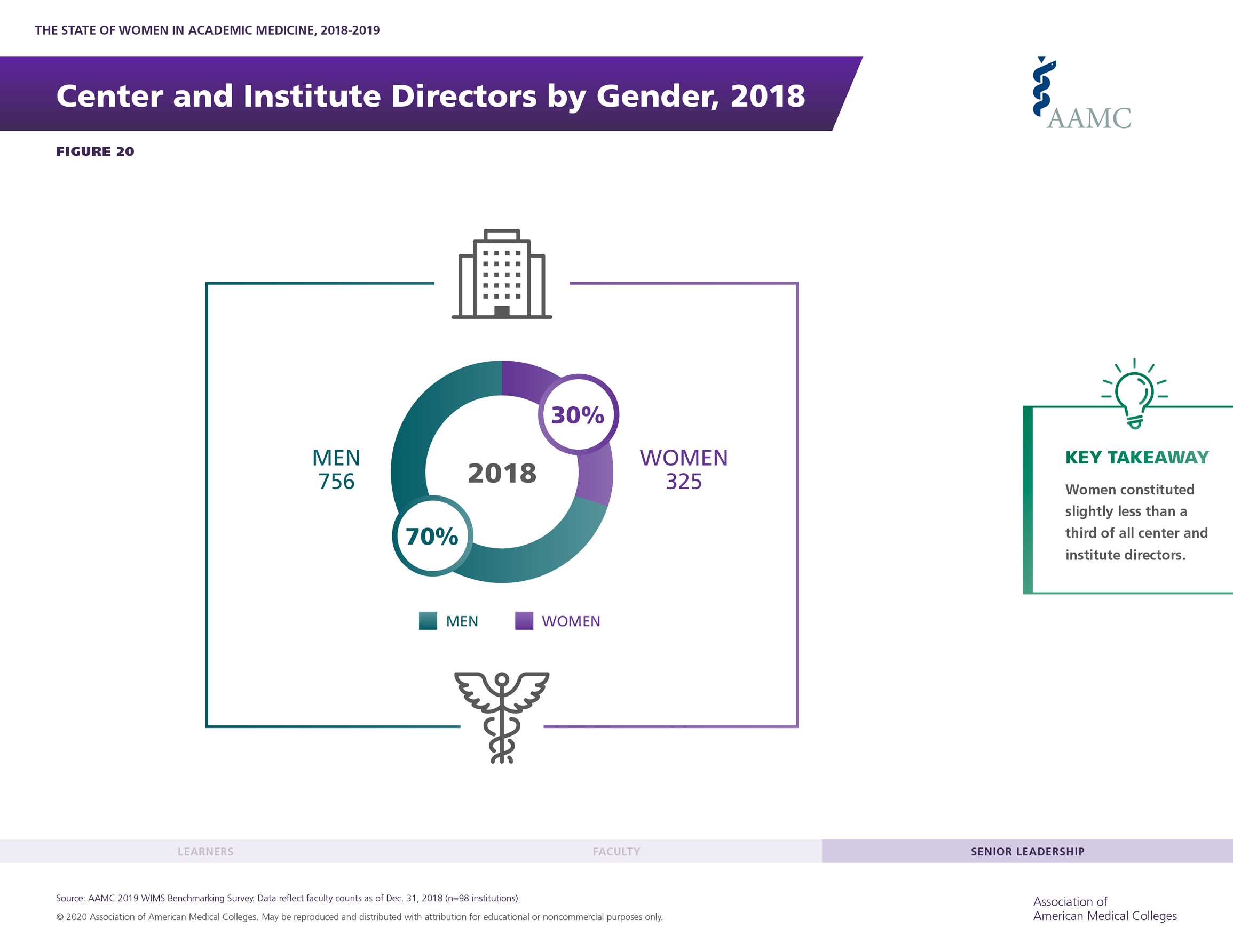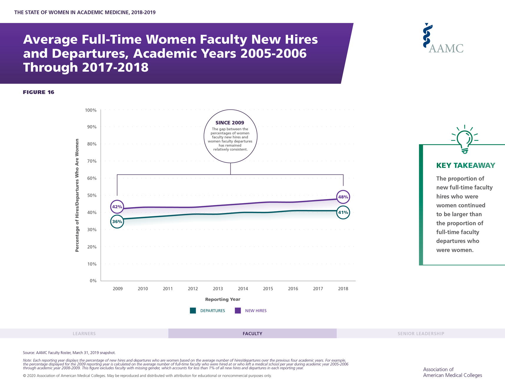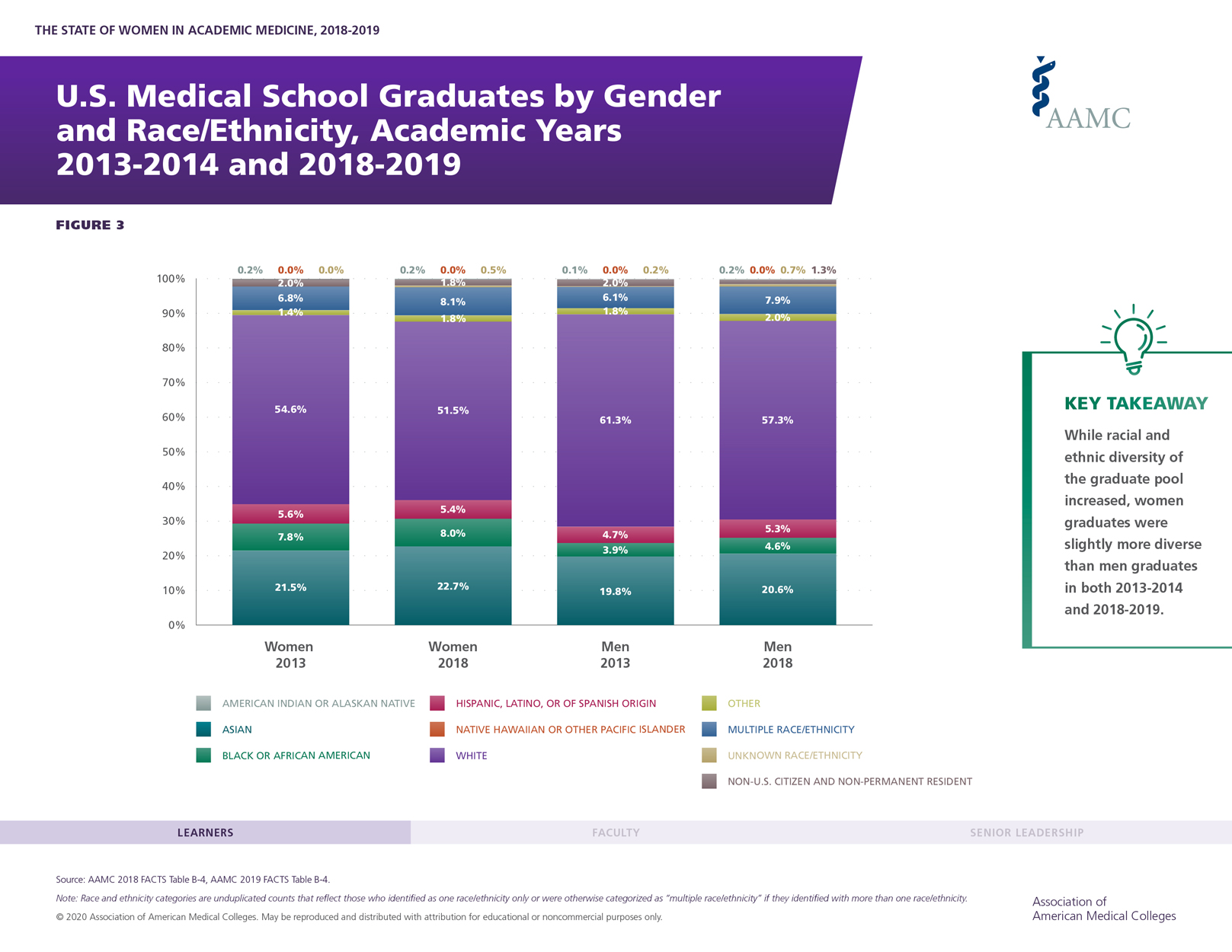 The State of Women in Academic Medicine 2018-2019: Exploring Pathways to Equity updates the edition of the report published in 2014. Key findings from this year's report show that: