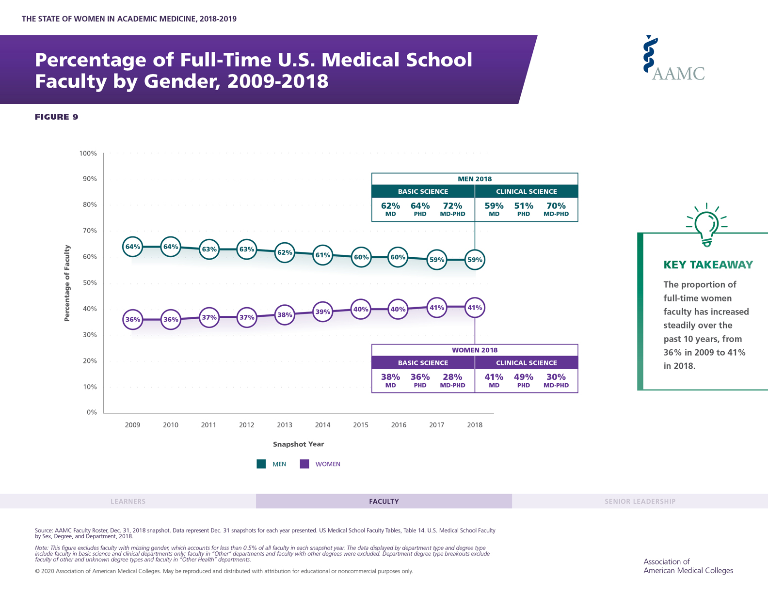 Figure 9: Percentage of Full-Time U.S. Medical School Faculty by Gender, 2009-2018