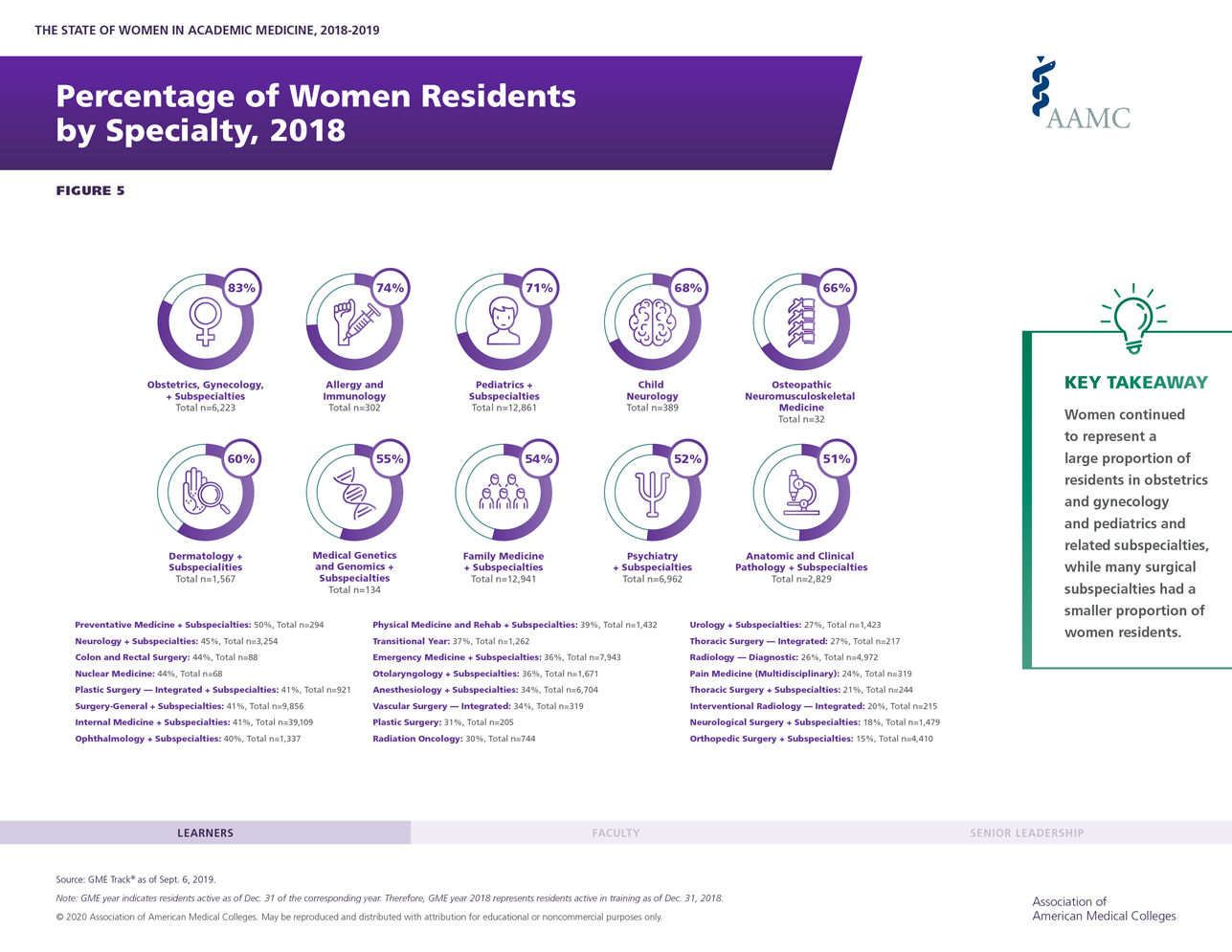Figure 5: Percentage of Women Residents by Specialty, 2018